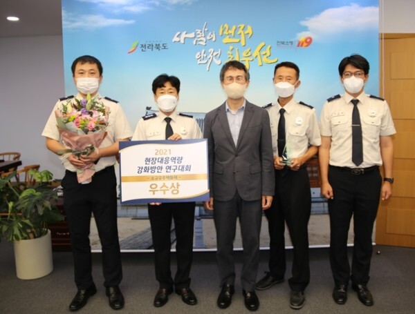 전북소방본부(본부장 김승룡)가 지난 27일 소방청 주관으로 열린 ‘2021년 현장대응역량 강화방안 연구발표대회’에서 전국 2위에 선정돼, 행정안전부장관상을 수상했다.