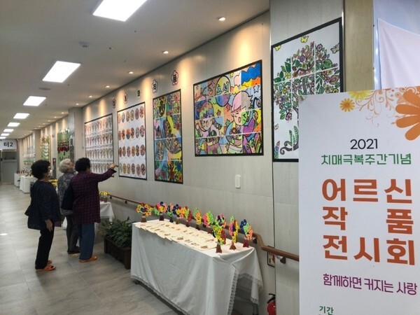 치매 극복의 날을 기념해 열린 이번 행사에서는 센터 내 쉼터프로그램, 인지강화교실 및 가족프로그램(자조모임, 동물매개)에 참여 중인 60명의 어르신과 가족들이 지난 2개월 동안 직접 만든 24종의 미술 작품들이 전시됐다.