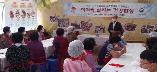 김제시는 금산면 소재 우수농촌체험공간 삶의향기(대표 허영숙)에서 65세 이상 어르신을 대상으로 면역력 살리는 건강밥상 교육을 실시했다.