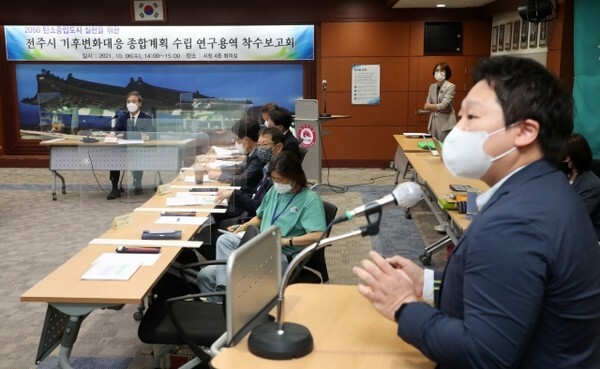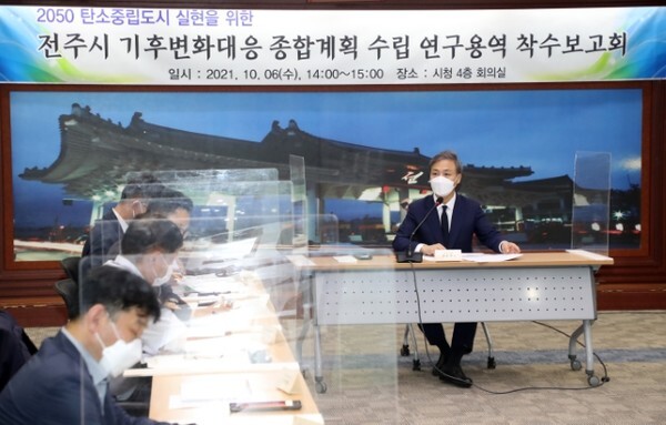 시는 6일 전주시청 4층 회의실에서 김승수 전주시장이 참석한 가운데 기후위기 대응 및 2050 탄소중립 실현을 위한 전주시 기후변화대응 종합계획 수립연구용역 착수보고회를 개최했다.