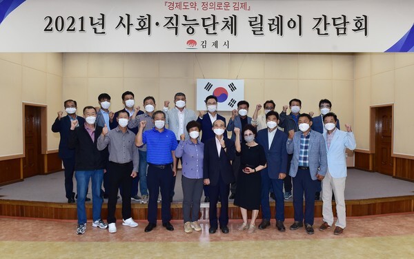 김제시는 7일 시청 3층 대회의실에서 19개 읍면동 주민자치위원장들로 구성된 주민자치협의회(회장 김왕배)와 간담회를 가졌다.
