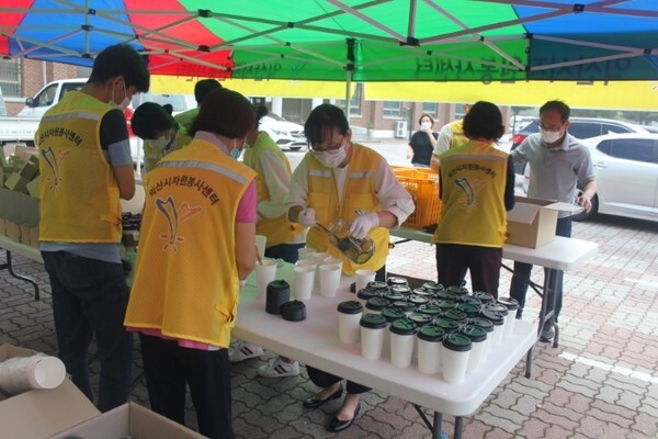익산시자원봉사센터(이사장 엄양섭)가 코로나19 방역현장 근무자들의 사기진작과 감사의 마음을 전하기 위해 사랑의 간식 나눔을 펼쳐 큰 호응을 얻었다.