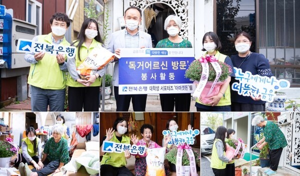 JB금융그룹 전북은행(은행장 서한국) 대학생 서포터즈는 덕진노인복지관(관장 하갑주)과 지난 7일 전주시 덕진구 일대 독거어르신 가정 3곳을 방문해 봉사활동을 실시했다고 11일 밝혔다.