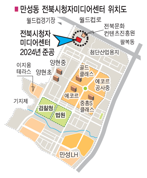 전북도 관계자는 “현재 시청자미디어센터 사업 부지 인근에 만성지구 내 JTV전주방송, TBN 전북교통방송 등 방송국과 전북콘텐츠융합진흥원, 정보통신 업종이 들어설 수 있는 지식산업센터 등이 구축돼 있어 첨단산업의 연계 효과를 거둘 수 있도록 하겠다”고 밝혔다.