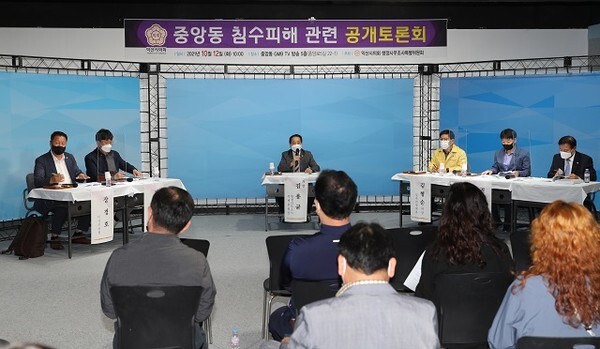 12일 공개토론회서 “중앙동 침수피해는 공사업체 귀책사유”라는 입장 밝혀