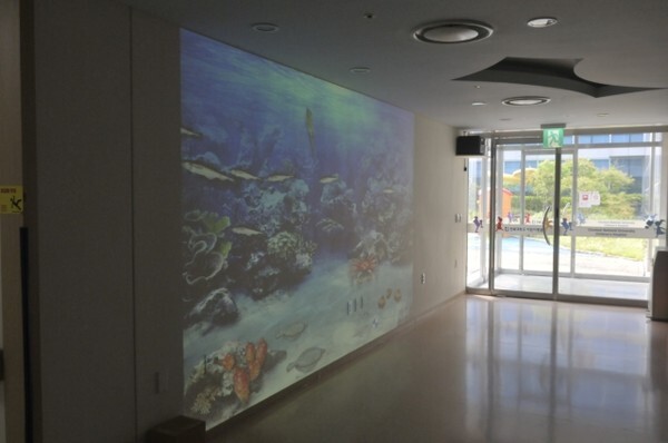 디지털모션월은 사용자의 손이나 몸의 움직임을 인식해 벽면 스크린에 투사된 영상이 다양하게 변화하는 인터랙티브 영상미디어다.