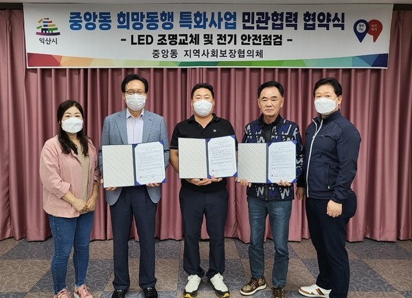중앙동 행정복지센터와 ㈜동부전력(대표 이용호)는 13일 전기재해 예방 및 밝은 주거환경 제공 등 어려운 이웃들의 삶의 질 향상을 위한 취약계층 주거환경개선 업무협약을 체결했다.