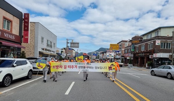 이길원 소방서장은 “출동 시 골목길 등에 불법 주·정차된 차들로 도착 시간이 지체되는 경우가 있다”며 “내 가정과 이웃의 안전을 위해 군민들이 소방차 길 터주기와 불법 주·정차 근절에 적극적으로 협조해주길 바란다”고 말했다.