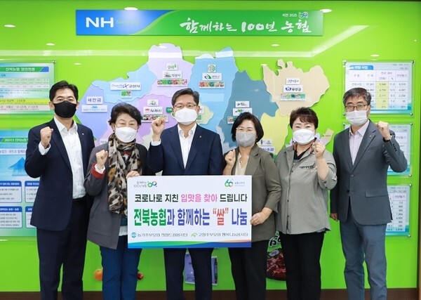 전북농협(본부장 정재호)과 고향주부모임 전북도지회(회장 정명숙), 농가주부모임 전북연합회(회장 이경자)는 14일 농협전북본부에서 정성가득 쌀나눔 행사를 실시했다.
