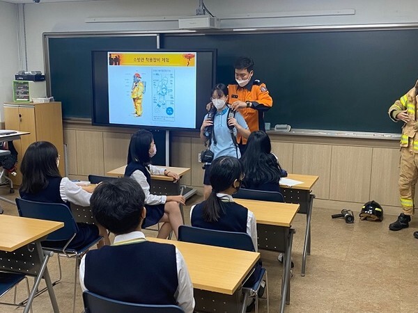 따라서 이날 체험교실에서는 소방의 역사, 소방공무원이 하는일, 소방공무원 근무여건과 직업의 장단점 소개, 소방공무원 채용시험 절차, 체력 시험 준비요령 등 소방공무원에 대한 실질적인 직업 정보 제공과 함께 학생들이 직접 방화복과 개인 보호장비를 착용해보는 다양한 프로그램이 진행됐다.