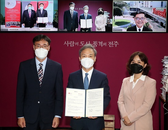 시는 지난 15일 싱가포르 테마섹 폴리테크닉 대학(총장 피터 람)과 비대면 업무협약을 체결하고, 랜선여행 등 관광콘텐츠 홍보와 함께 전주시 소재 대학과 테마섹 폴리테크닉 대학 간 학생 교류와 공동연구 프로그램을 지원하기로 했다. 또 양 기관은 관광 및 문화 교류 등 국제교류도 강화하기로 뜻을 모았다.