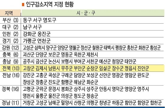 전북 ‘소멸위기’ 심각하다.. 지자체 10곳 인구감소지역 지정