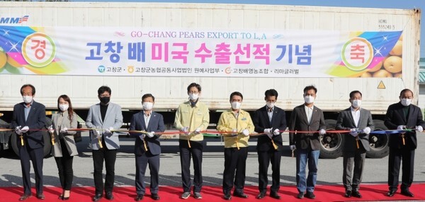 전국 최고의 당도를 자랑하는 고창배가 올해 첫 미국 수출 길에 올랐다.