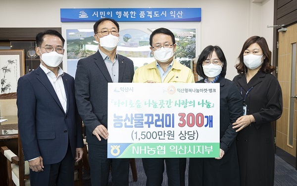 이종림 NH농협 익산시지부장은 “지역민과 함께 상생한다는 마음에서 물품과 성금 후원에 나서게 됐다. 지역사회를 위한 공헌활동을 앞으로도 계속해 이어갈 것이다”고 말했다.