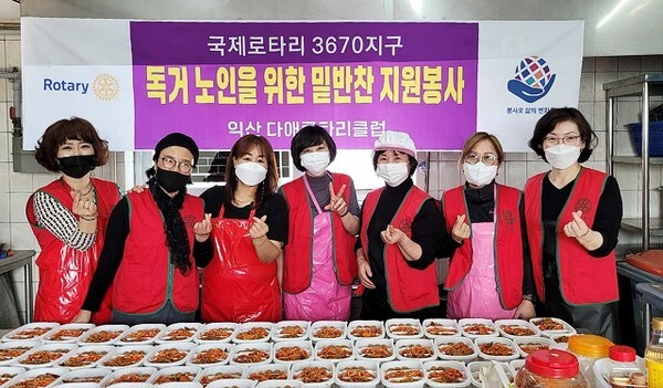 국제로타리 3670지구 익산다애로타리클럽(회장 이현주)이 독거노인 밑반찬 지원봉사를 통해 나눔을 실천했다.