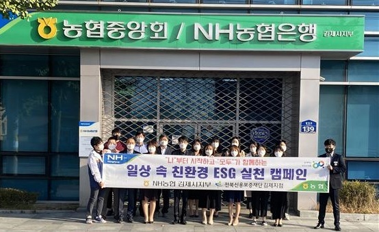 농협 김제시지부(지부장 김태곤)는 26일 전북신용보증재단 김제지점(지점장 구덕기)과 함께 “나”부터 시작하고 “모두”가 함께하는 “일상 속 친환경 ESG 실천 캠페인”을 실시했다.