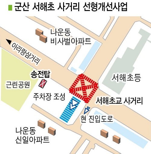 군산 서해초 어긋난 교차로, 십자형 사거리로 바뀐다