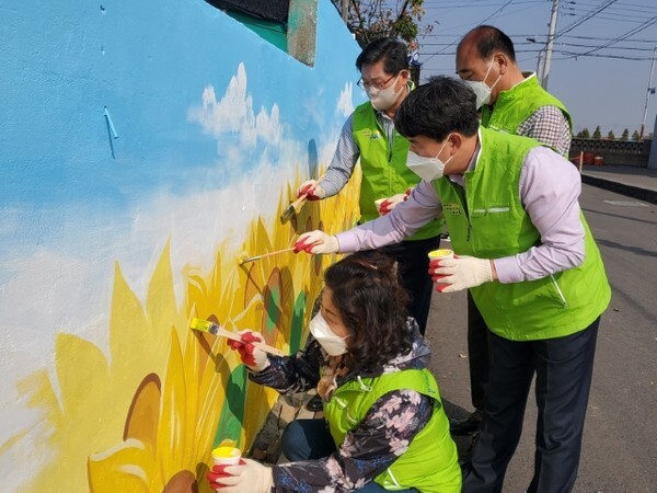 전북농협(본부장 정재호)과 서군산농협(조합장 김기수)은 27일 범농협 노블고객봉사단(회장 이계순) 회원 10여명과 함께 군산시 산북동 신창마을에서 벽화 그리기와 환경정화 활동을 펼쳤다.