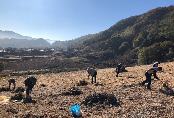 용담면직원들의 농작업 일손돕기는 이러한 상황 인식 하에서 두 달 동안의 여정으로 펼쳐졌다. 직원들은 지난 9월부터 매주 4~5명씩 적어도 2~3회가량 일손돕기에 참여했다. 들깨·메밀·콩 등의 수확을 도왔고, 11농가 1.7ha의 인삼밭 철거에 손길을 보탰으며, 고추밭 멀칭비닐 걷기를 거들었다.