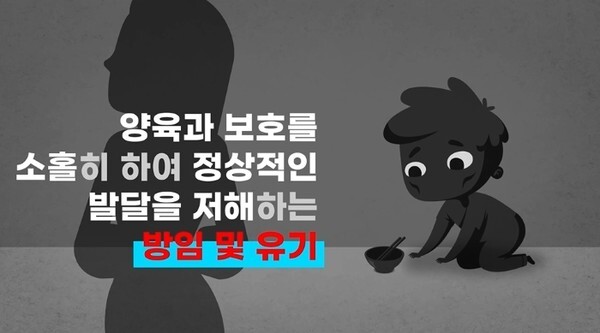 이 영상은 신체적 학대뿐 아니라 아이들에 대한 무관심과 방임, 아동의 건강 또는 복지를 해지는 것도 아동학대라는 것을 표현함으로써 학대에 대한 인식 개선이 필요하다는 것을 강조했다.