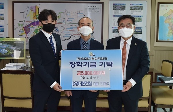 (유)더본건설(진재석 대표)이 지역의 우수 인재 양성을 위해 써달라며 장학기금 5백만 원을 (재)김제사랑장학재단(이사장 박준배)에 기탁했다.