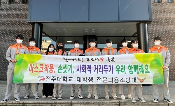 이날 행사에 참여한 윤지혜 홍보부장은 “전주대 전문의용소방대원으로서 소방안전활동과 코로나19 확산 방지에 힘써 우리들의 소중한 일상을 되찾을 수 있도록 노력하겠다”고 말했다.