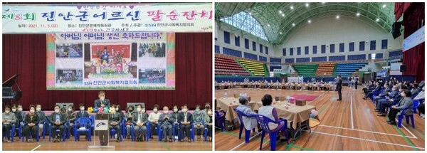 진안군사회복지협의회(회장 김진, 이하 진사협)는 5일 형편이 어려운 팔순 노인 40명을 초청해 팔순 잔치를 열었다.