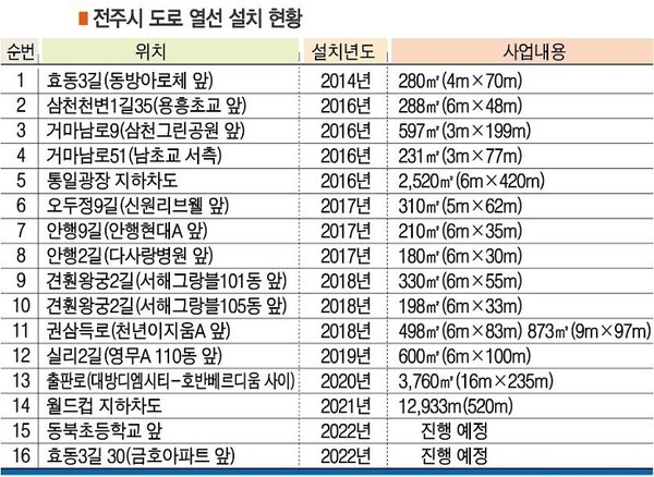 또한 자동 염수 분사 장치도 관내 3곳(용복동 우림로·색장동 동부대로·진북동 어은로)에 설치해 조속한 복구에 도움을 줄 예정이다.