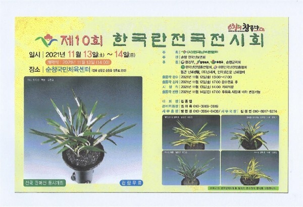 (사)한국난보존협회가 오는 13일과 14일 양일간 순창국민체육센터에서‘2021 제10회 한국란 전국 전시대회’개최한다.