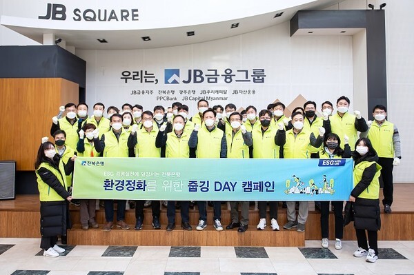 JB금융그룹 전북은행(은행장 서한국)은 12일 ESG경영 캠페인의 일환으로 ‘줍깅DAY’행사를 실시했다.