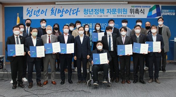 더불어민주당 전라북도당 청년위원회(위원장 이정하)는 지난 12일 전북도당 대회의실에서 청년위원회 청년정책 자문단 위촉식을 가졌다고 밝혔다.