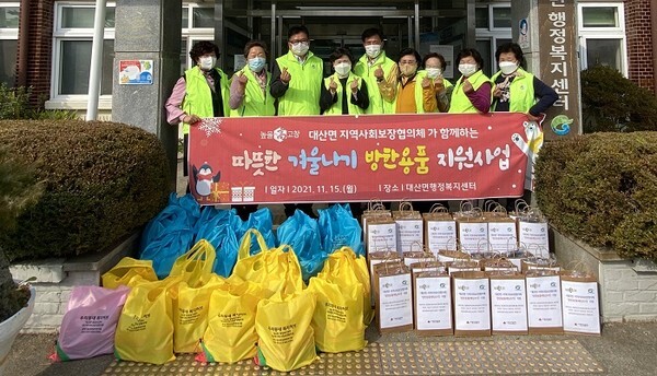 고창군 대산면지역사회보장협의체(민간부문위원장 강부덕, 공공부문위원장 이영윤)는 지난 15일 관내 취약계층 30세대에 따뜻한 겨울나기 방한용품을 지원했다.