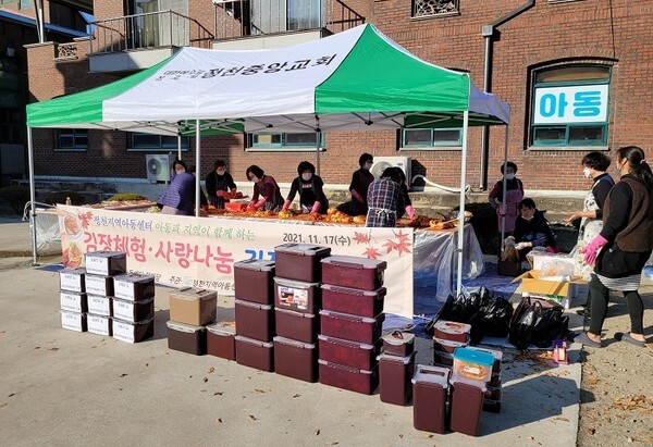 겨울철을 앞두고 진안 정천지역아동센터(센터장 김병문)는 지난 17일 앞마당에서 행정복지센터 등 여러 기관·단체 소속 구성원들과 공동으로 ‘체험과 사랑이 함께하는 김장 나누기’ 행사를 가졌다.
