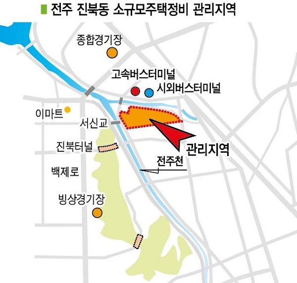 ‘전주 고속버스터미널 남측(건너편)’ 지역이 국토부의 소규모주택정비 관리지역 후보지로 선정됐다.