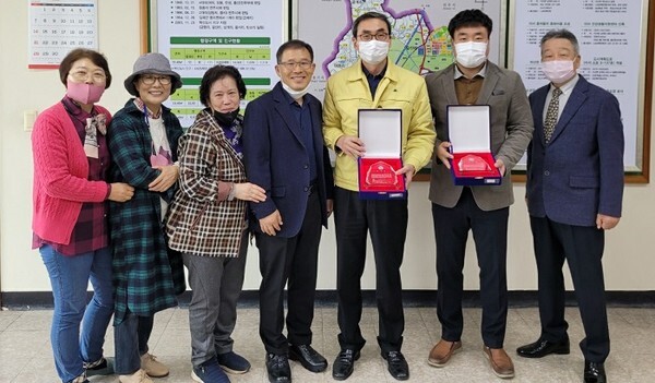 이서혁신파크골프클럽(회장 최효열)이 파크골프장 조성에 도움을 준 송지용 전라북도의회 의장, 김의철 이서면장, 송영욱 이서농협장, 김용범 완주군 체육공원과 주무관에게 최근 감사패를 전달했다.
