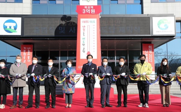 고창군이 2일 군청 광장에서 ‘희망2022나눔캠페인’의 시작을 알리는 출범선포식과 모금 목표 달성을 위한 ‘사랑의 온도탑’ 제막식을 가졌다.