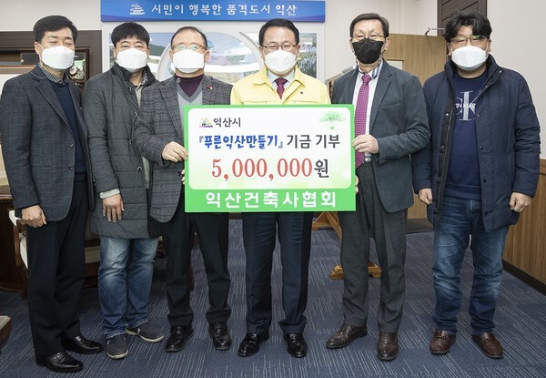익산건축사협회(회장 김경태)는 7일 정헌율 익산시장을 방문해 푸른 익산 만들기에 써 달라며 성금 500만원을 쾌척했다.