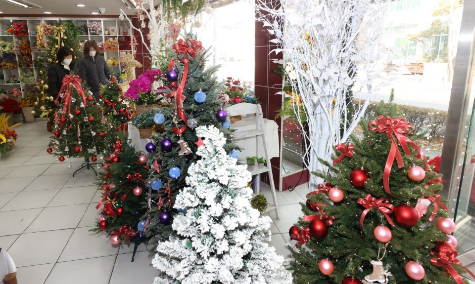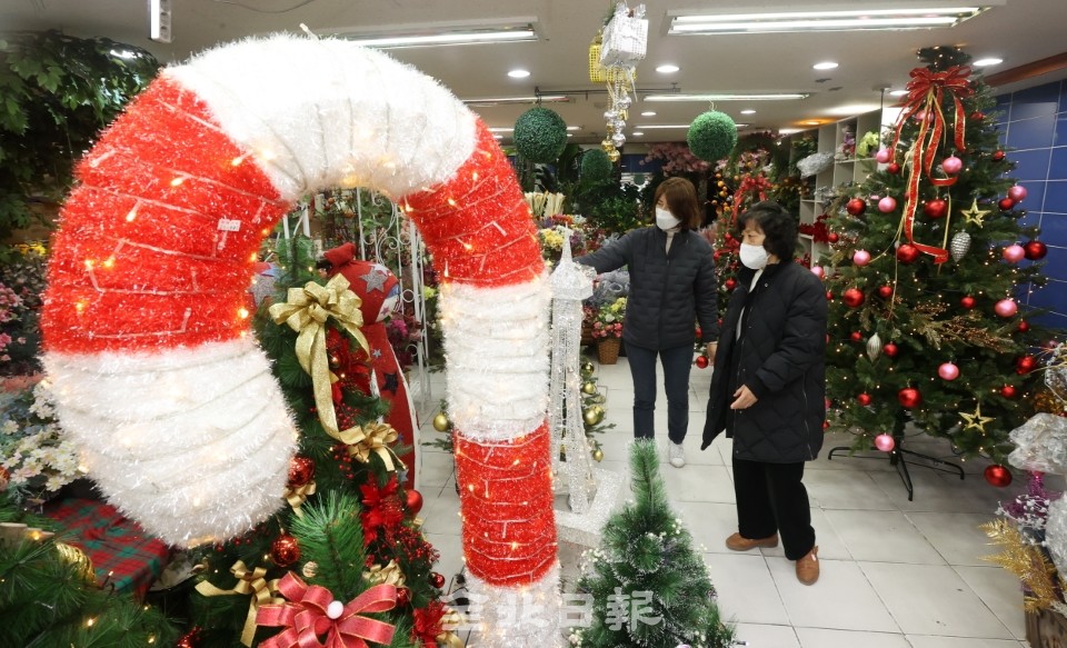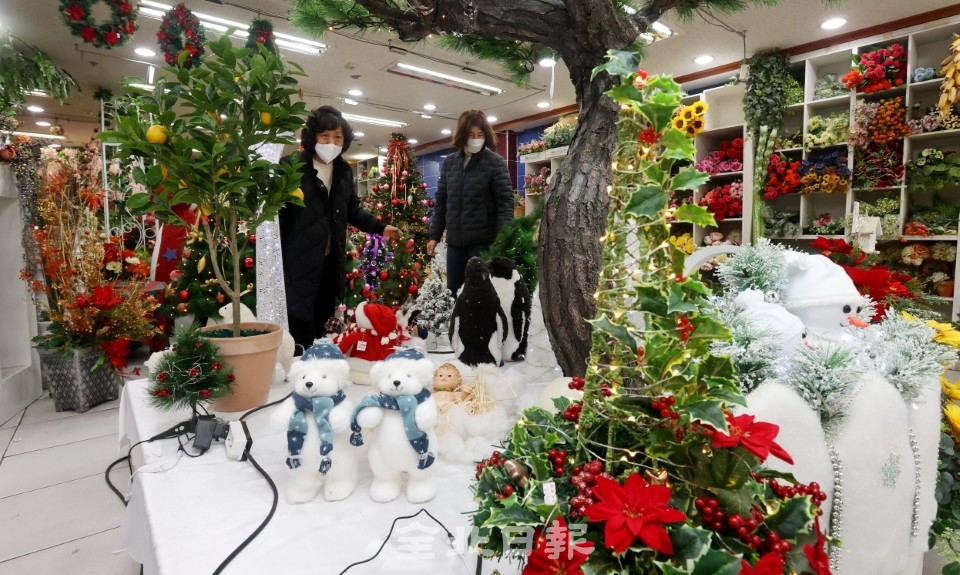 7일 전주 중앙시장의 한 조화 도매전문점에 갖가지 성탄트리와 장식품들이 전시되어 있어 다가오는 성탄 분위기를 한껏 자아내고 있다.