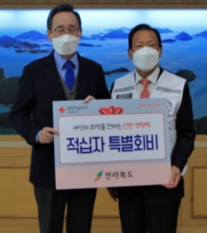 전북도는 8일 대한적십자사 전북지사(회장 이선홍)에 도내 취약계층을 위한 인도주의 활동에 써달라며 2022년도 적십자 특별회비를 전달했다.