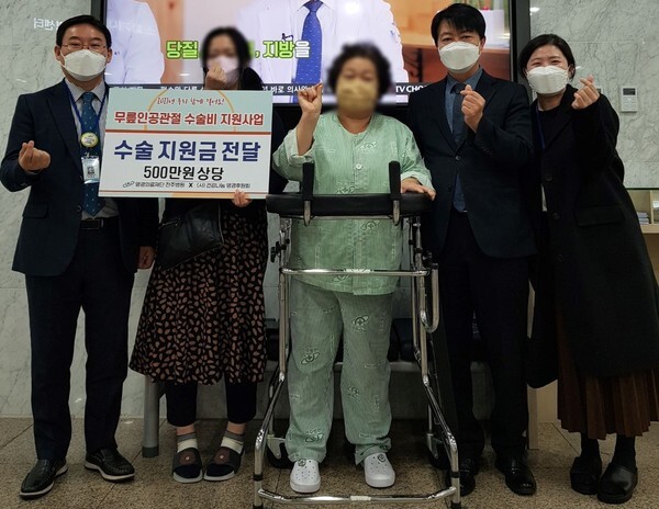 이번에 수술비를 지원받은 환자는 10년 전부터 무릎에 이상이 생겼지만, 경제적인 부담으로 치료를 미뤄온 환자로 보행에 어려움이 생기면서 치료를 결심하게 됐다. 치료 결정 후 수술비 부담으로 고민하다 전주병원 건강나눔 영경후원회를 통해 500만 원 상당의 수술 및 치료비를 지원받게 됐다.