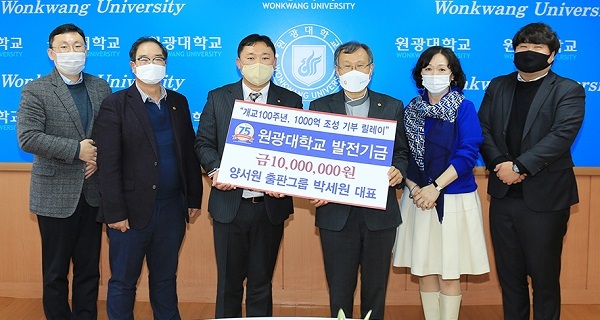 아울러 양서원 출판그룹은 유아교육/보육학, 사회복지학, 교육학 분야 전공 서적 전문 출판회사로서 원광대 발전과 교육학문 분야 발전을 위해 원광대 발전기금 조성에 참여했다고 밝혔다.