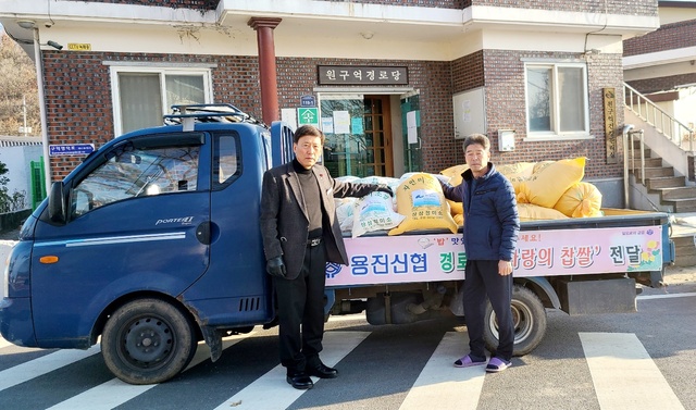 완주군 용진신협(이사장 두철균)이 지난 17일 용진읍 마을경로당 39개소와 봉동읍 둔산리 옛 둔산지점 관내 아파트 경로당 6개소 등 모두 45개 경로당에 ‘사랑의 찹쌀’을 전달했다. 이들 각 경로당에 전달된 찹쌀(20∼35㎏)은 시세로 400만원 상당이다.