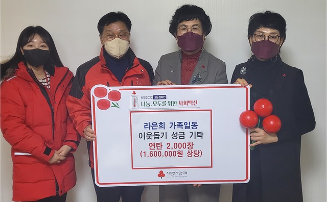 이날 전북일보사에서 열린 전달식에서 라 회장은 “아들 혼사를 치르며 많은 분들이 따뜻한 마음을 전달해준 것을 감사하게 여겨 연탄을 기탁하게 됐다”며 소감을 밝혔다.