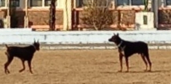 지난 주말 익산 이리계문초 운동장에서 도베르만 2마리 활보
