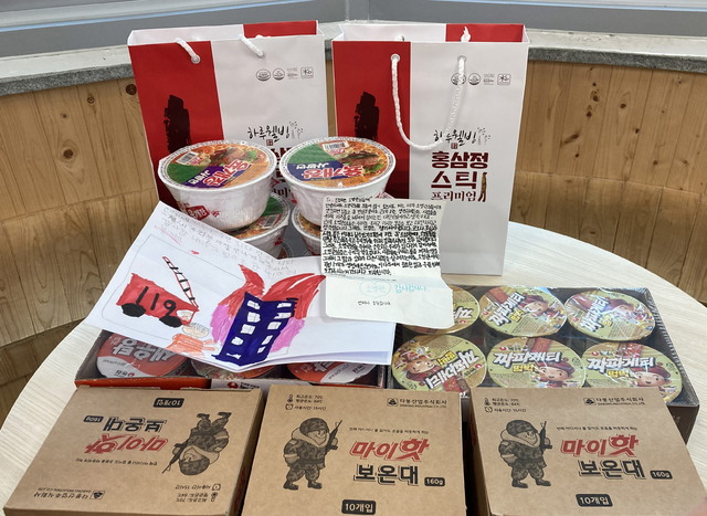 학부모와 함께 이날 익산소방서를 찾은 주인공은 가온초교 4학년 장채윤과 1학년 최다인 학생들로 이들은 고사리 손으로 쓴 감사편지와 함께 홍삼,핫팩,컵라면 등 깜짝선물을 전한 후 곧바로 돌아갔다.