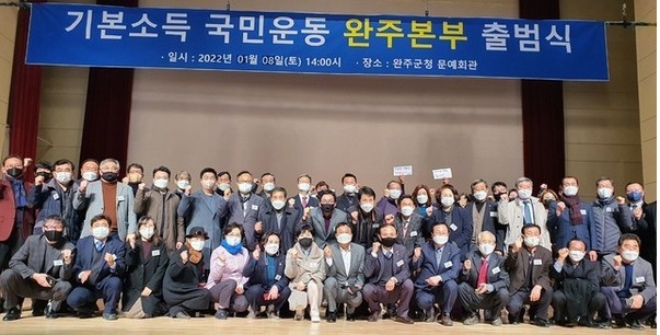 기본소득국민운동 완주본부는 지난 8일 완주군청 문예회관에서 유희태(더불어민주당 정책위 부의장) 상임대표를 비롯해 안호영 국회의원, 김재천 완주군의회 의장, 최등원 완주군의회 부의장, 윤수봉 완주군의회 의원, 서남용 완주군의회 의원 등 관계자들이 참석한 가운데 출범식을 가졌다.