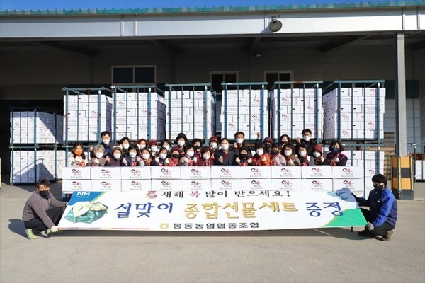 봉동농협(조합장 김운회)은 지난 11일 조합원들이 코로나19 상황에서 맞이하는 설명절을 따뜻하고 행복하게 보내기를 기원하는 마음을 담아 '조합원 특별선물 증정' 행사를 가졌다.