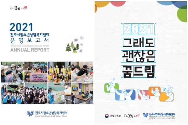 전주시청소년상담복지센터(센터장 정혜선)와 전주시학교밖청소년지원센터(센터장 정혜선)가 지난 한 해 추진한 청소년 지원사업의 성과를 담은 ‘2021 운영보고서’를 발간했다.