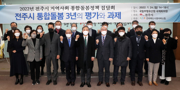 전주시와 전라북도 사회서비스원(원장 서양열)은 24일 국립무형유산원 국제회의장에서 김승수 전주시장과 국내 복지·의료분야 전문가 등이 참석한 가운데 ‘2022년 전주시 지역사회 통합돌봄정책 집담회’를 개최했다.