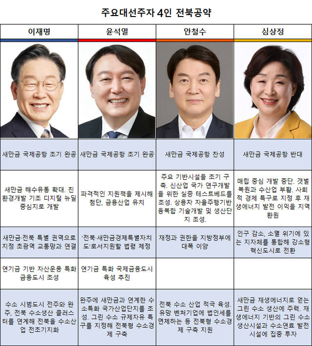 새만금공약 李·尹·安 비슷.. 沈, 국제공항 반대·매립 중단